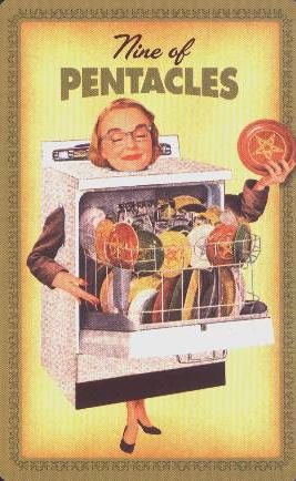 The 9 of Pentacles represents earned rest. The element Earth, attached to the Pentacles suit, appreciates the rest that completion of hard work brings. This is a good time for games and relaxation.