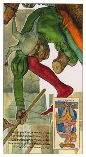 The King of Cups uses his intuition to achieve his ideals. Since Cups are turned inward, and Kings turned to the outside world, this card might be a difficult one, or it could be a powerful one.