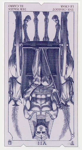 During the prevous card, The Lovers, all the wisdom of the first cards in the deck has been processed and a choice was made for personal growth. Now it's time to do something with all this baggage, to actually travel the road. A lot has been done so far, wisdoms have been accumulated and integrated into one's personality.