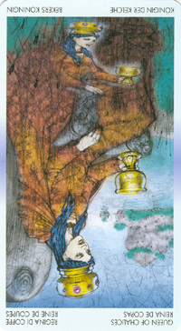 Queens and Cups are both somewhat turned inward. This might make whatever choice you're facing when this card falls, a deep one. Take your time, and don't let the issue overwhelm you or your emotions.