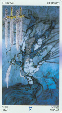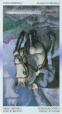 The Knight of Swords lacks the naivety of the Knight of Wands, he has analyzed the terrain ahead and weighed his options there. He knows what his own nature can throw into the mix, but does not let himself be held idle by that. The activities ahead will likely include the solving of conflicts and problems on your road to your ideal.