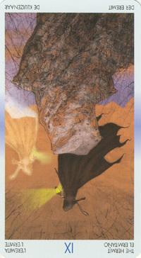 The Hermit carries the number 9. This is the highest base number. After 9 the composed numbers emerge. Therefore the number 9 is the gateway to a higher order. It is also a place to rest before embarking on the next leg of the journey.