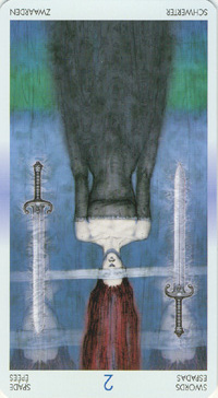 The 2 is an assignment number in tarot, and in this case of the 2 of Swords, it's about being forced to wait for something, often even while blindfolded in some sense.