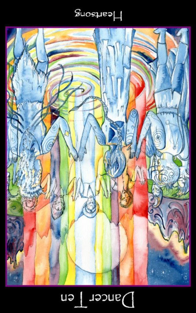 The 10 of Cups is the link to the Swords suit. It is time to leave your own emotions behind and face the world and the tasks ahead.