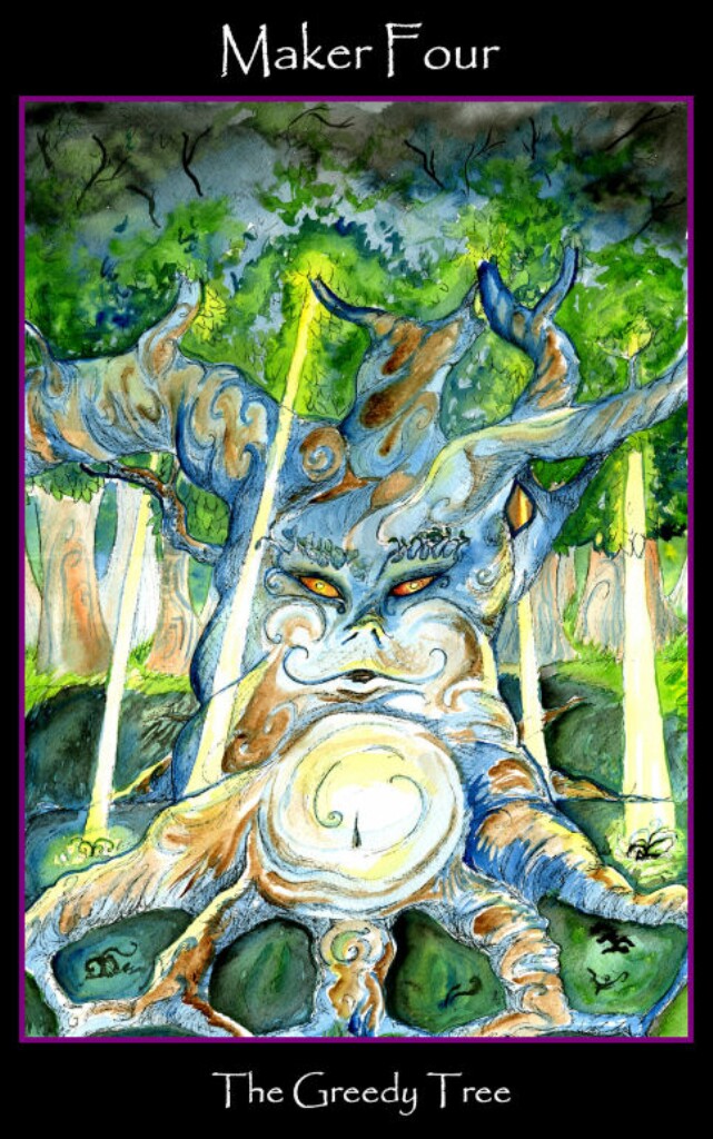 The 4 of Pentacles is about holding on to what you got. The number 4 represents structure and order, and fits well with the suit's element, Earth.
