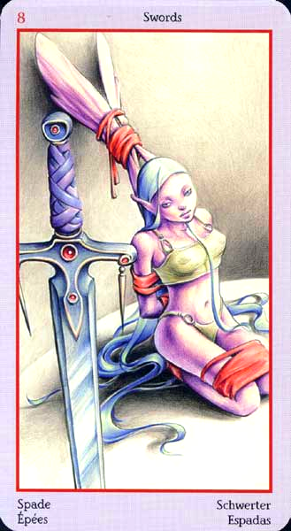 The 8 of Swords is about slowly regaining strength and energy. The 8 is an assignment number, and in the element of Swords it's a bit harder than usual.