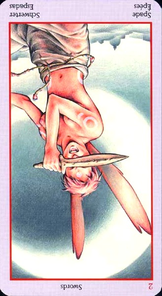 The 2 is an assignment number in tarot, and in this case of the 2 of Swords, it's about being forced to wait for something, often even while blindfolded in some sense.