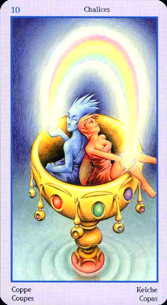 The 10 of Cups is the link to the Swords suit. It is time to leave your own emotions behind and face the world and the tasks ahead.