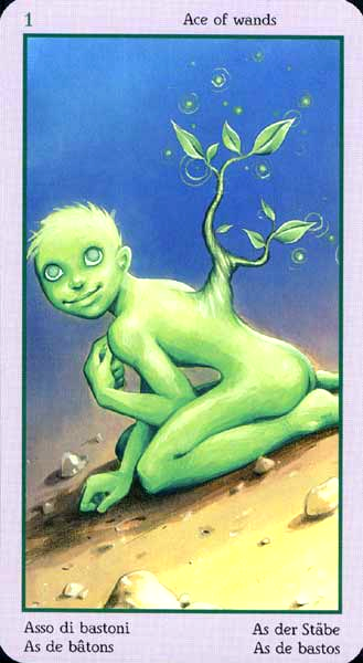 The ace of wands represents the beginning of an idea. The element fire and the number 1 give a powerful combination: enterprise and new beginnings apply to both. This is an energetic combination, which is why the card is generally considered a positive one. Spring is the season associated with this card.