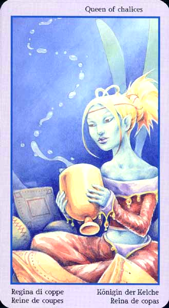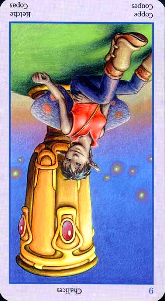 With the 4, the second cycle of this suit is commenced, where a choice between structure and feeling has to be made, where old securities have to be let go of to work towards a new future. But like Wands, Cups don't like structure much, they prefer to be free and dream rather than to make commitments and go for something.