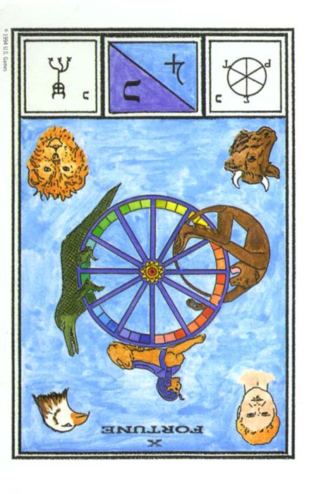 With the Wheel of Fortune, the second major cycle of Tarot commences. The first cycle in the first cards of the deck was about development as a child, accumulating wisdoms and integrating them into your personality. This second cycle is about your development as an adult. It is a more demanding cycle. You'll have to see if you can face what the world throws at you.
