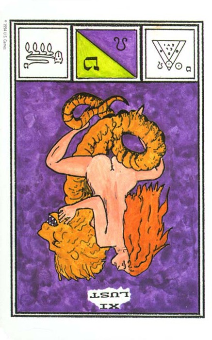 This card carries the number 11. In the Rider-Waite deck, Strength and Justice have swapped places because Waite saw links with the astrological signs Leo and Libra.
