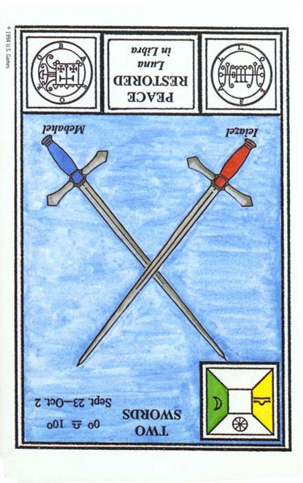 The 2 is an assignment number in tarot, and in this case of the 2 of Swords, it's about being forced to wait for something, often even while blindfolded in some sense.