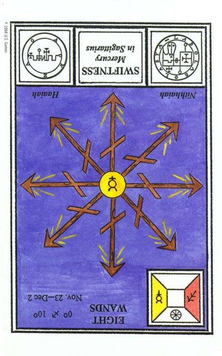 The 8 is the third and last assignment number. The element Fire, associated with Wands, doesn't like assignments much. It prefers to do exactly as it pleases.
