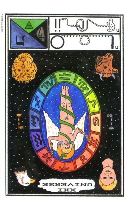 This card falls when you've completed all assignments, overcome all obstacles and are completely at peace with yourself due to your accomplishments. Yet Tarot wouldn't be Tarot if it didn't challenge you to enter entirely new worlds and start the process all over again.