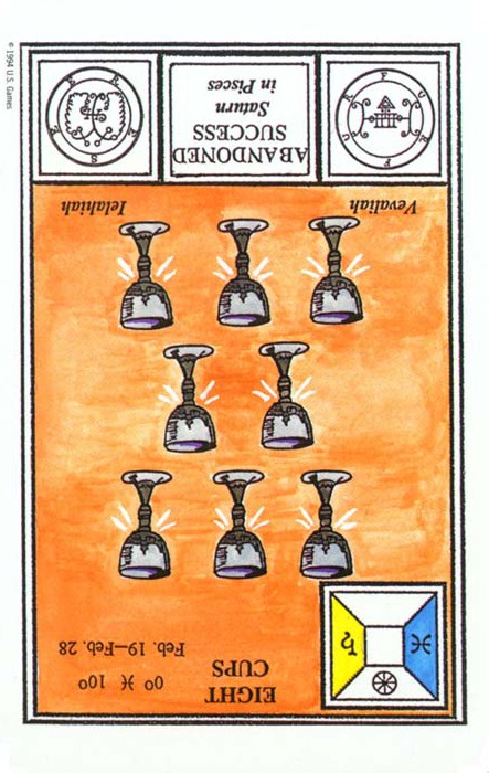 8 is an assignment number, and in the suit of Cups, it is about overcoming the urge to sink into depression caused by view on the long road ahead.