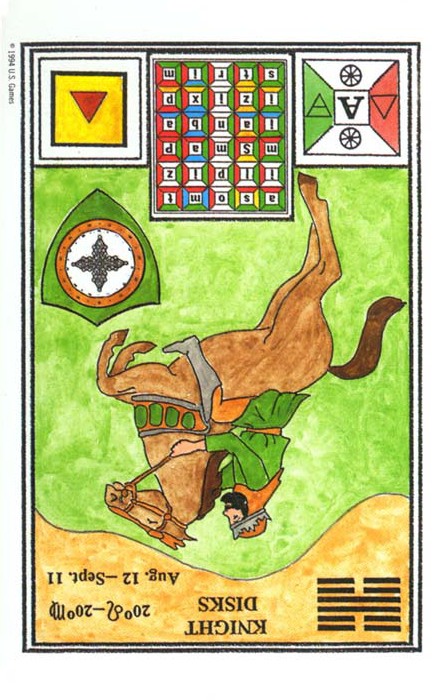 The Knight of Swords lacks the naivety of the Knight of Wands, he has analyzed the terrain ahead and weighed his options there. He knows what his own nature can throw into the mix, but does not let himself be held idle by that. The activities ahead will likely include the solving of conflicts and problems on your road to your ideal.