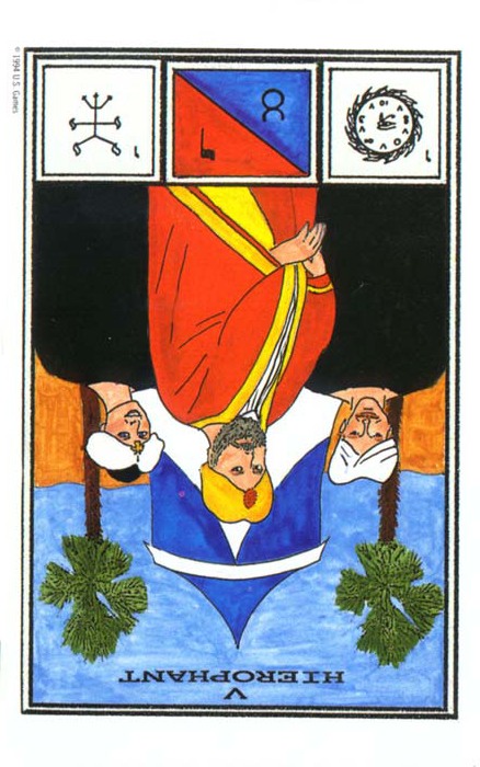 Where The Emperor is the chief of worldly power, The Hierophant is the head of spiritual matters.