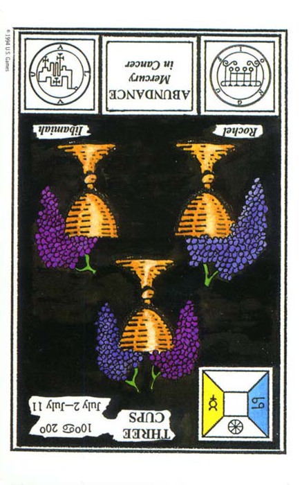 The 3 of Cups represents hope, faith and love. The 3 is a reward number and in this suit of Cups your feelings during that number will be that of joy and self-contentment.