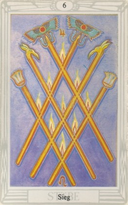 The 6 of Wands represents victory (over yourself maybe). 6 is the number that represents the rewards of hard work, which you did in card 5. When a 6 of Wands is in your game, you might be feeling a little proud with your accomplishments. But some modesty might help you shine even better.
