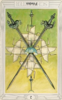 The 2 is an assignment number in tarot, and in this case of the 2 of Swords, it's about being forced to wait for something, often even while blindfolded in some sense.