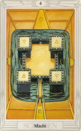 The 4 of Pentacles is about holding on to what you got. The number 4 represents structure and order, and fits well with the suit's element, Earth.