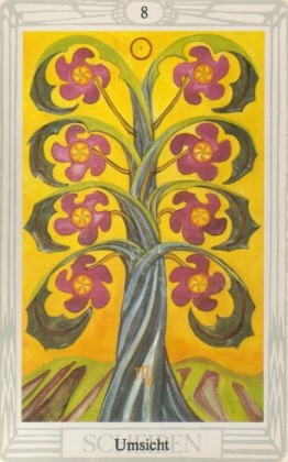 The 8 of Pentacles is about keeping up the hard work you're doing, and trying to be happy about doing that work at the same time. While the 3 of Pentacles is about completing a masterpiece, the 8 of Pentacles is about doing the apprentice work that makes you a master of your trade.