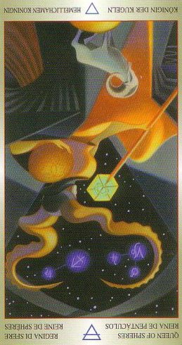 The Queen in the suit of Pentacles becomes aware of her Earthly attributes; she's reliable and sober, able to give good advice.