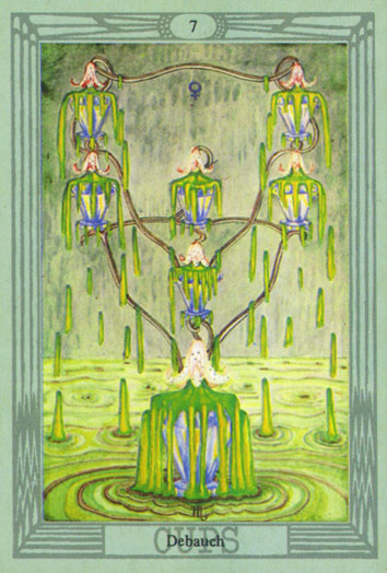 The 7 of Cups is about making a choice between different ideals. But Cups, with the water element, don't like making definitive choices that much, making this 7 in this suit a bit of a hard choice.