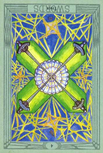 4 is the first number in the cycle of giving things shape. It's about making things real. The element of Swords also relates to making things real, so this enhances the effect so much that arrogance can cause you to exhaust yourself.