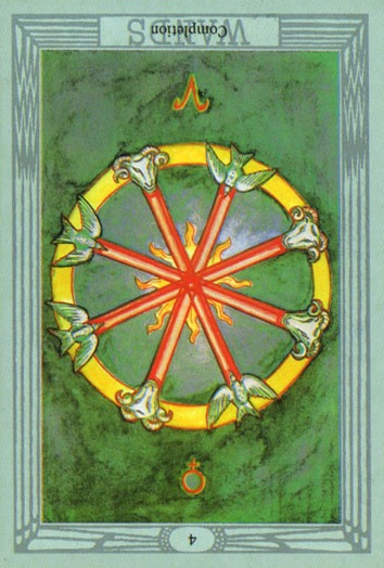 The number and element of this card (4=structure, element=fire) are in sync because fire can use the stability of structure, and structure can use the liveliness of fire. Here the structure of 4 doesn't cause stagnation.