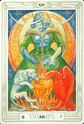 With Death, an important decision made with The Hanged Man was given shape by letting go of the old. Now you're in a transitionary period and this Temperance card is a place of rest during the journey through the underworld.