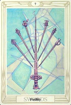 The 7 of Swords is about making slow progress because you can't trust the situation and/or people around you.
