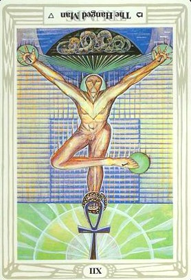 First you learned that you're not a plaything of fate, that you can make your own choices. Then you've learned how to fend for yourself and face yourself. Now, at The Hanged Man, you can learn to let go. You no longer have to cling to old values. You've found strength in yourself and by letting go, you allow growth.