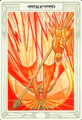 The Queen of Wands is drawn when you (have to) become more aware of the properties of the Wands suit; vitality, optimism and enthousiasm.