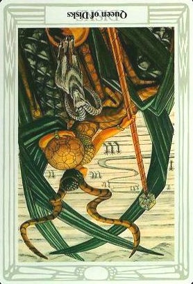 The Queen in the suit of Pentacles becomes aware of her Earthly attributes; she's reliable and sober, able to give good advice.