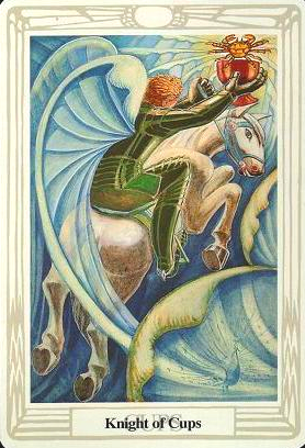 The King of Cups uses his intuition to achieve his ideals. Since Cups are turned inward, and Kings turned to the outside world, this card might be a difficult one, or it could be a powerful one.