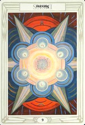 The 9 of Swords represents relief from cropped-up grief. The number 9 is a number of reward and rest and accomplishment. In the element of Swords there is not a lot of time for rest, but without any rest you'd just burn yourself out.