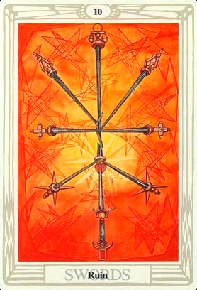 The 10 of Swords is about saying final goodbye to things or people that are bad to you.