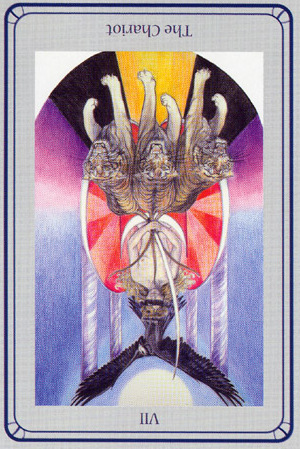 During the prevous card, The Lovers, all the wisdom of the first cards in the deck has been processed and a choice was made for personal growth. Now it's time to do something with all this baggage, to actually travel the road. A lot has been done so far, wisdoms have been accumulated and integrated into one's personality.