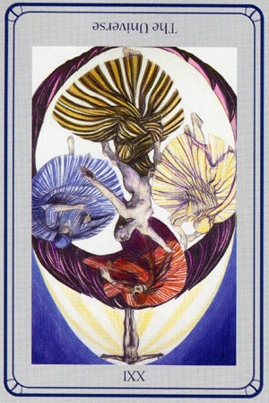 The World carries the number 21. As a composed number that is 3. The World is the third 3 in the Major Arcana. 3 is a reward number, so the third 3 must be even more powerful.