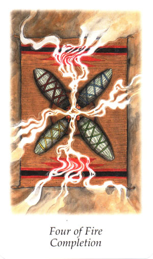 The number and element of this card (4=structure, element=fire) are in sync because fire can use the stability of structure, and structure can use the liveliness of fire. Here the structure of 4 doesn't cause stagnation.