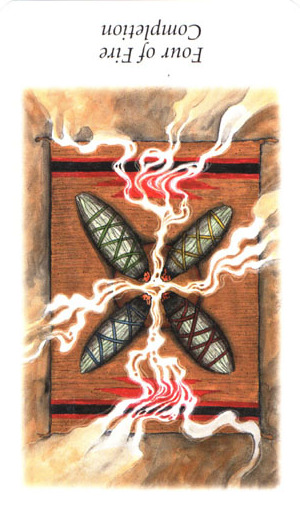 The number and element of this card (4=structure, element=fire) are in sync because fire can use the stability of structure, and structure can use the liveliness of fire. Here the structure of 4 doesn't cause stagnation.