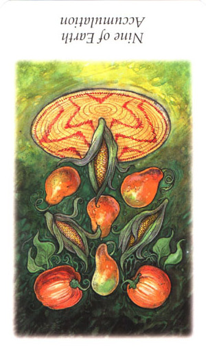 The 9 of Pentacles represents earned rest. The element Earth, attached to the Pentacles suit, appreciates the rest that completion of hard work brings. This is a good time for games and relaxation.