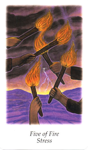 The 5 of Wands represents competition. The 5 is the second assignment number, and therefore a difficult card. 5 combined with the Wand's element fire challenges you. You'll have to fight hard for your idea, but you stand a good chance of succeeding.