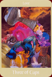 The 3 of Cups represents hope, faith and love. The 3 is a reward number and in this suit of Cups your feelings during that number will be that of joy and self-contentment.
