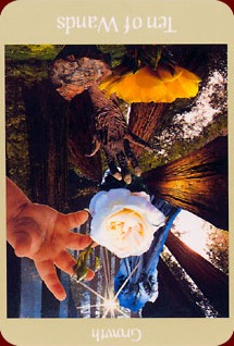 The 10 of Wands is therefore the transition from the element Fire (associated with Wands) to the element Water, associated with Cups. As you might imagine, this not the easiest of transitions.