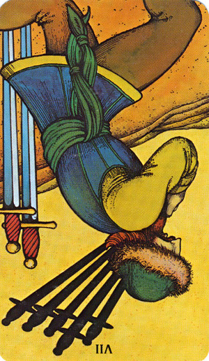 The 7 of Swords is about making slow progress because you can't trust the situation and/or people around you.