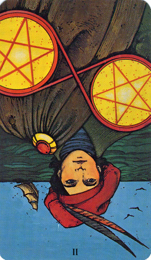 The 2 of Pentacles is an assignment number card, and the assignment here is to maintain a happy and relaxed attitude during a wait for results of what you started.