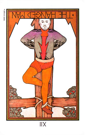 First you learned that you're not a plaything of fate, that you can make your own choices. Then you've learned how to fend for yourself and face yourself. Now, at The Hanged Man, you can learn to let go. You no longer have to cling to old values. You've found strength in yourself and by letting go, you allow growth.